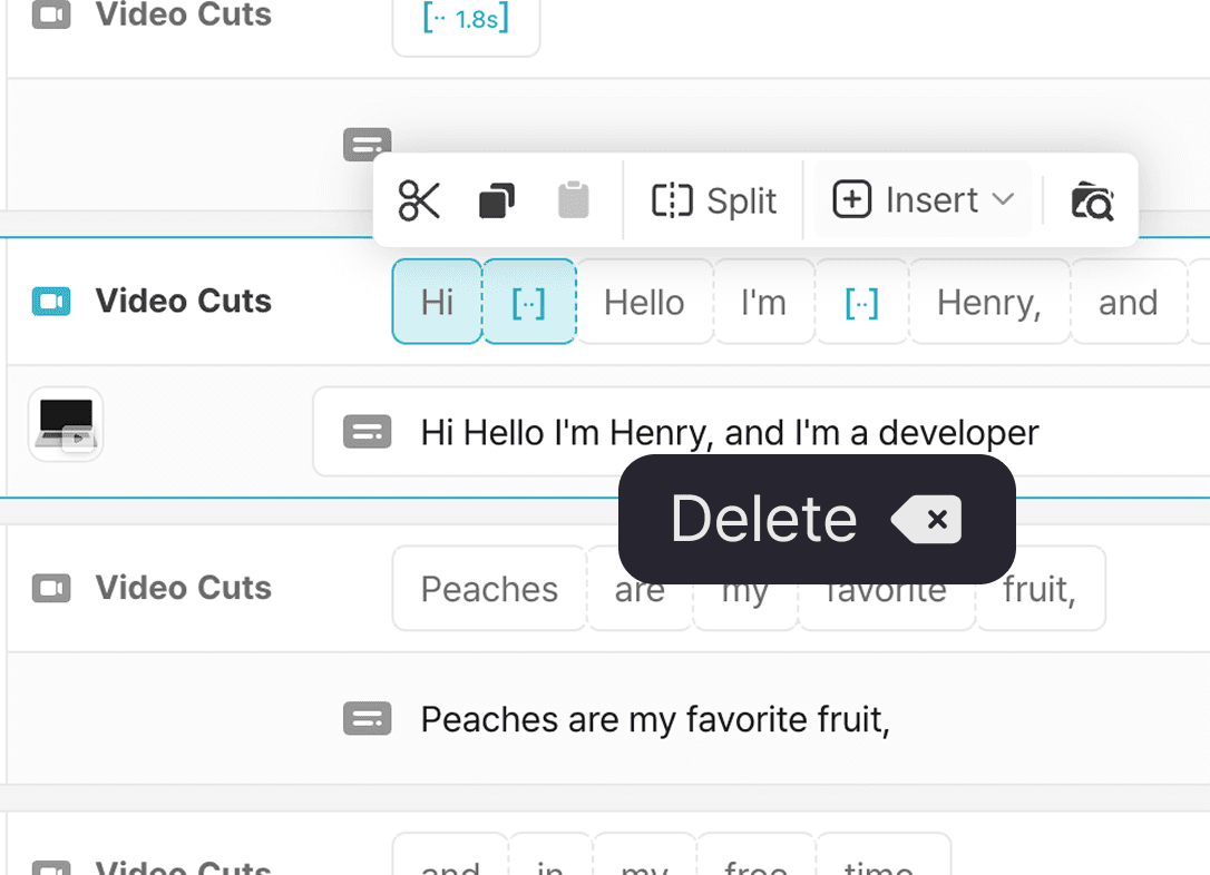 Read through the transcribed text and edit your video like a document.