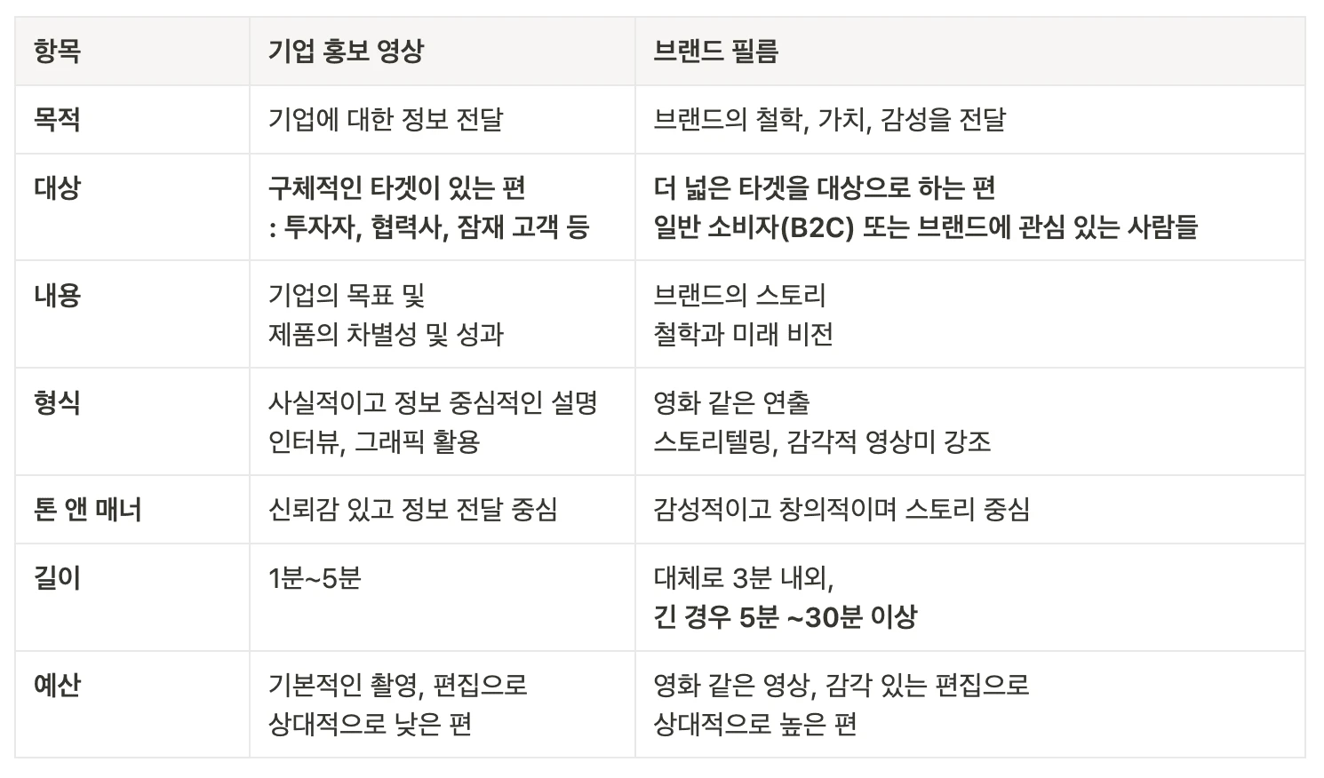 ✅ 기업 홍보 영상 vs 브랜드 필름 비교해보기