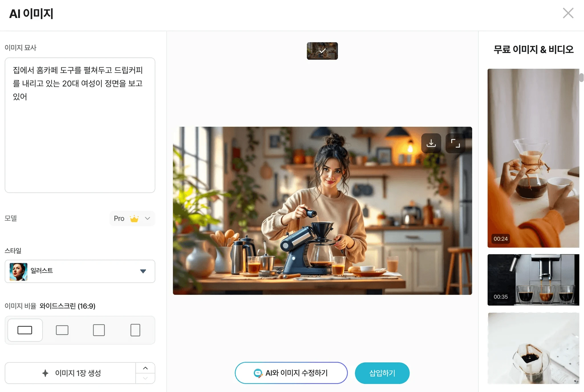AI 기반의 영상 편집 프로그램인 Vrew는 텍스트로 원하는 이미지를 묘사하고 어울리는 스타일을 선택하면, 완성도 높은 이미지를 제작할 수 있는데요. 묘사한 내용과 어울리는 무료 이미지와 비디오도 다양하게 찾아주기 때문에 다른 사이트를 돌아다닐 필요 없이 한 곳에서 다 해결할 수 있죠.