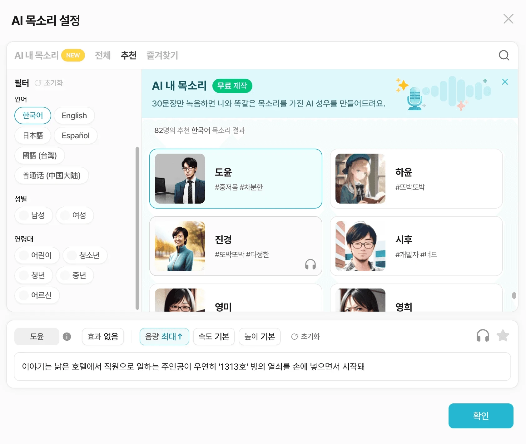 2. 영상 분위기에 맞는 성우와 언어 선택 가능