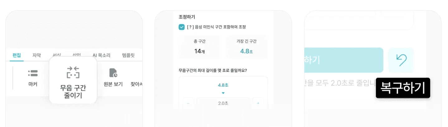 1. 영상의 호흡을 빠르게 만들어주는, ‘무음 구간 자동 삭제’