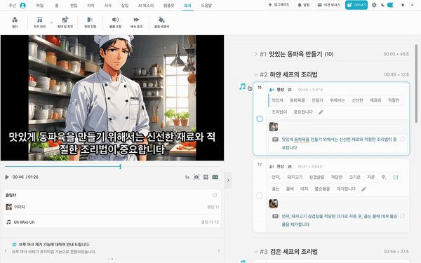 정보 전달이 핵심인 영상에서는 불필요한 효과를 줄이고 컷 편집을 활용하는 게 좋습니다.