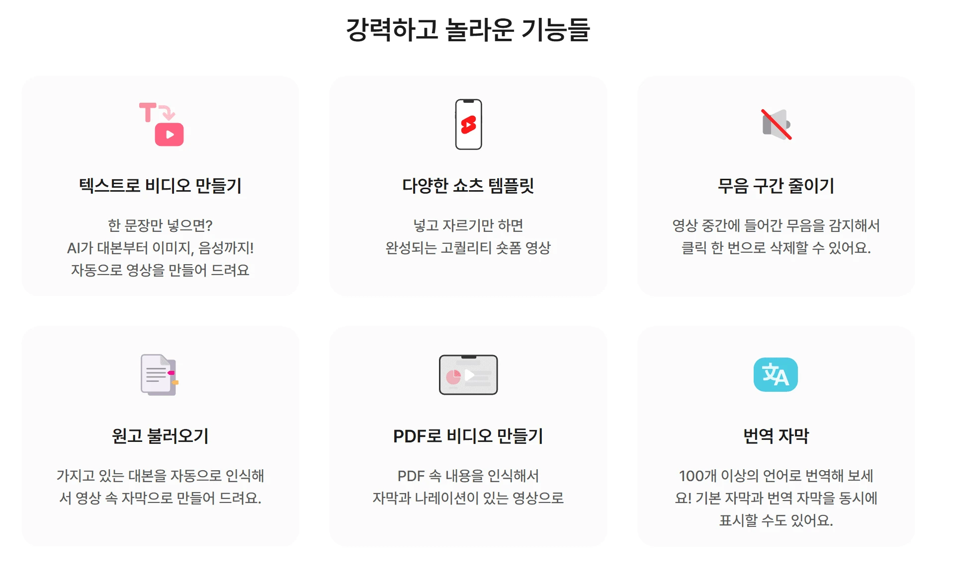 특히 자동 자막 생성이나 AI 음성과 같은 기능은 B2B 기업이 겪던 많은 고민을 해결해 줄 거예요. 자막을 쉽게 편집할 수 있어 전문 용어의 정확한 표기는 물론, AI로 일정한 스타일의 이미지와 영상을 생성해 브랜드 톤앤매너를 유지한 영상을 제작할 수 있습니다.