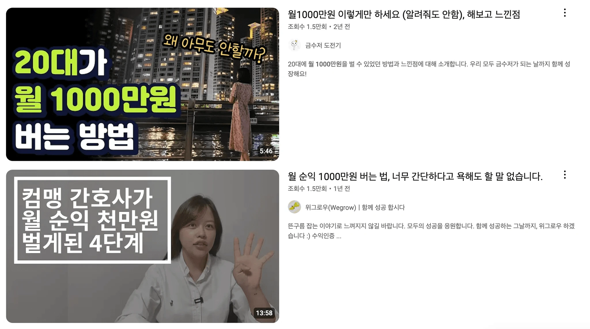 이런 식으로 썸네일을 만들 때는 가능한 한 많은 사람들이 클릭하는 게 중요합니다.