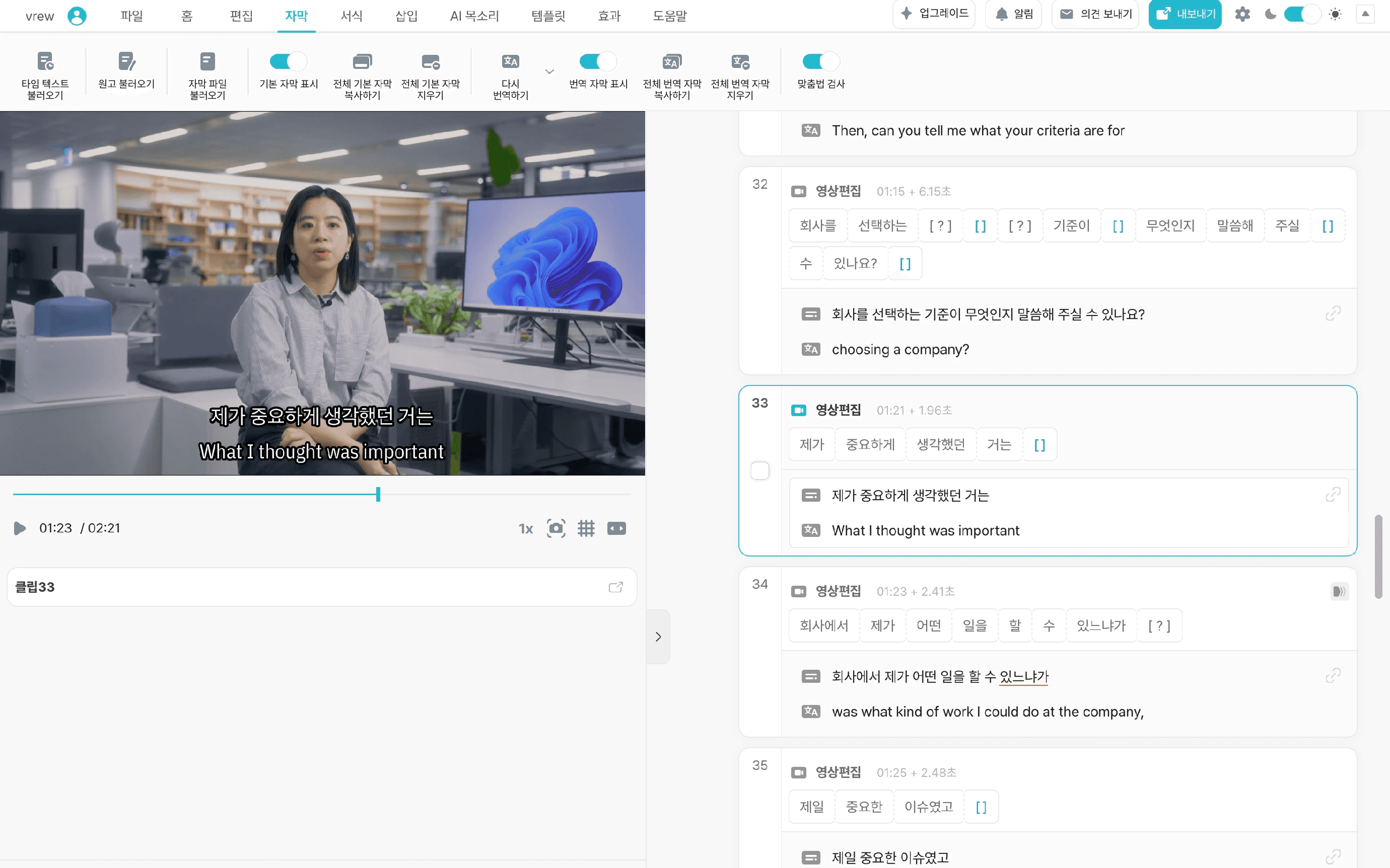 Vrew에서 자막을 번역하는 방법