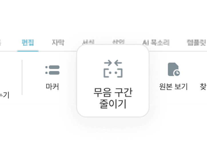 인터뷰 중 필요없는 정적 구간들을 한번에 삭제하여 더 깔끔하고 집중도 높은 영상으로 만들 수 있어요.