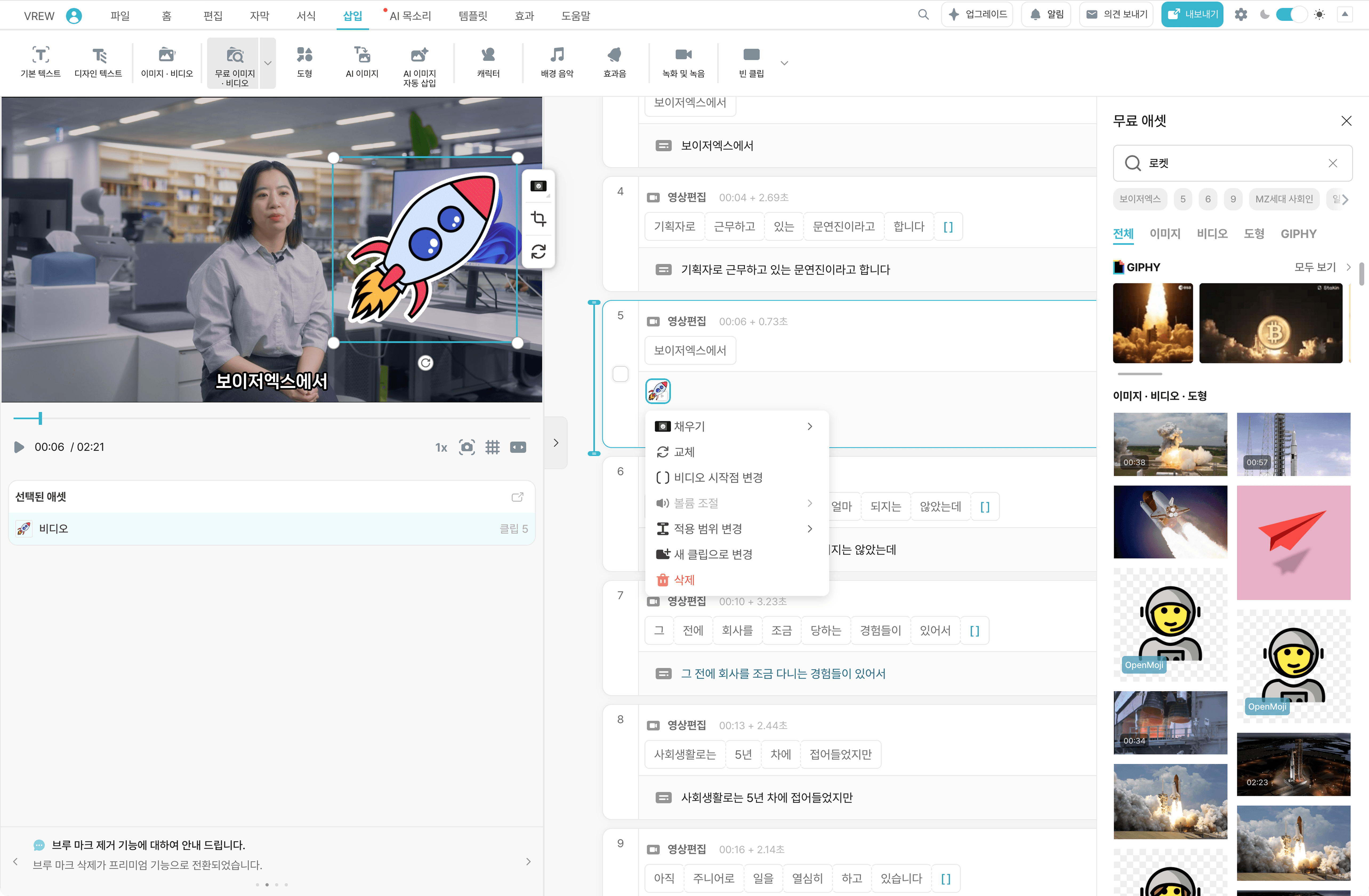 Vrew에서 무료 영상 소재를 편하게 검색하고 마음껏 추가해보세요.