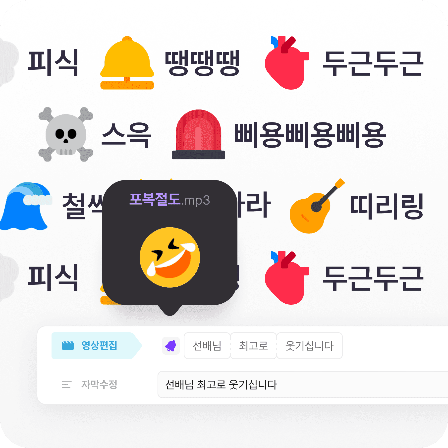 효과음, 배경 음악, 템플릿과 예능용 디자인 텍스트까지!
