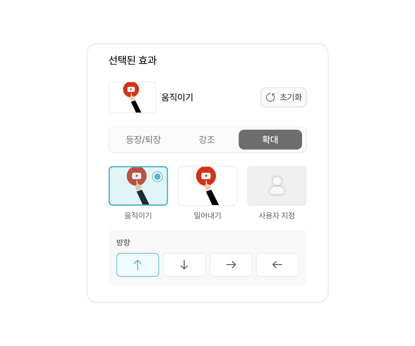 자유롭게 커스텀이 가능한 애니메이션 효과를 영상에 사용할 수 있어요.