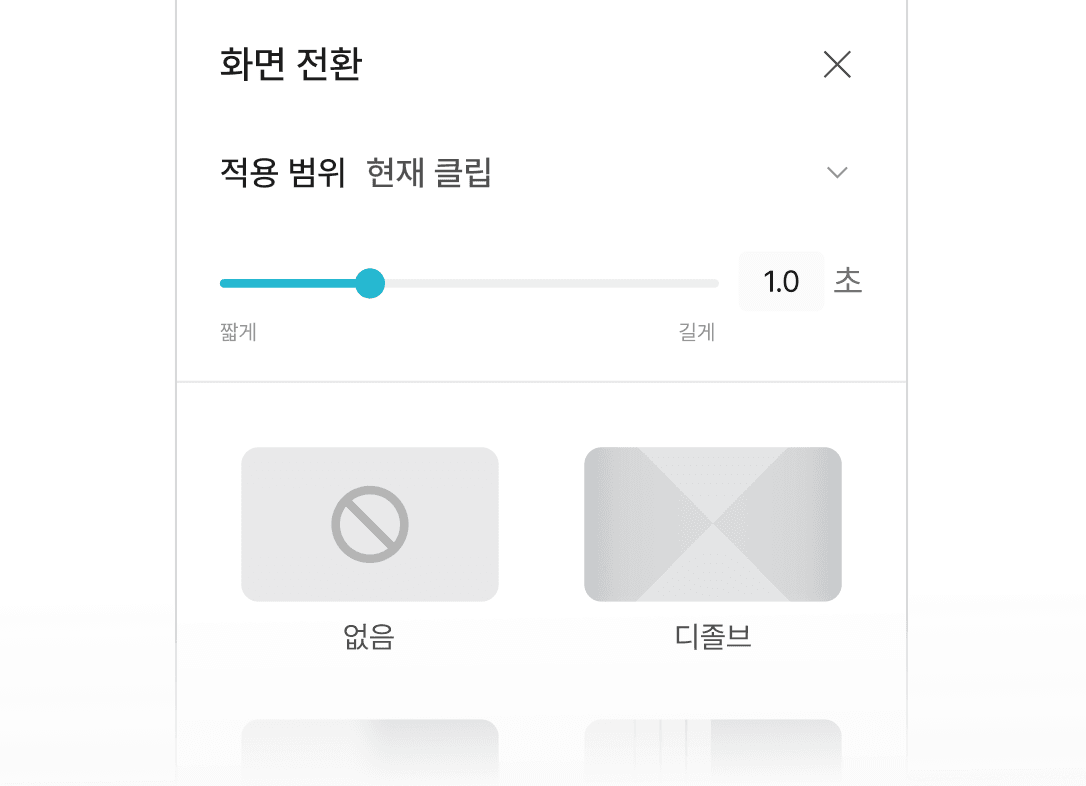 복잡한 편집 작업 없이도 간편하게 전환, 애니메이션 효과를 제공합니다.