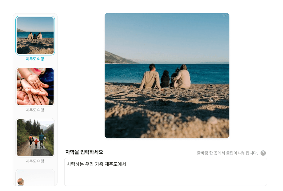 사진으로 이루어진 식전 영상도 Vrew에서 쉽게 만들 수 있어요. 사진을 재료로 영상을 생성하고, 원하는 방식으로 추가 수정해 보세요.