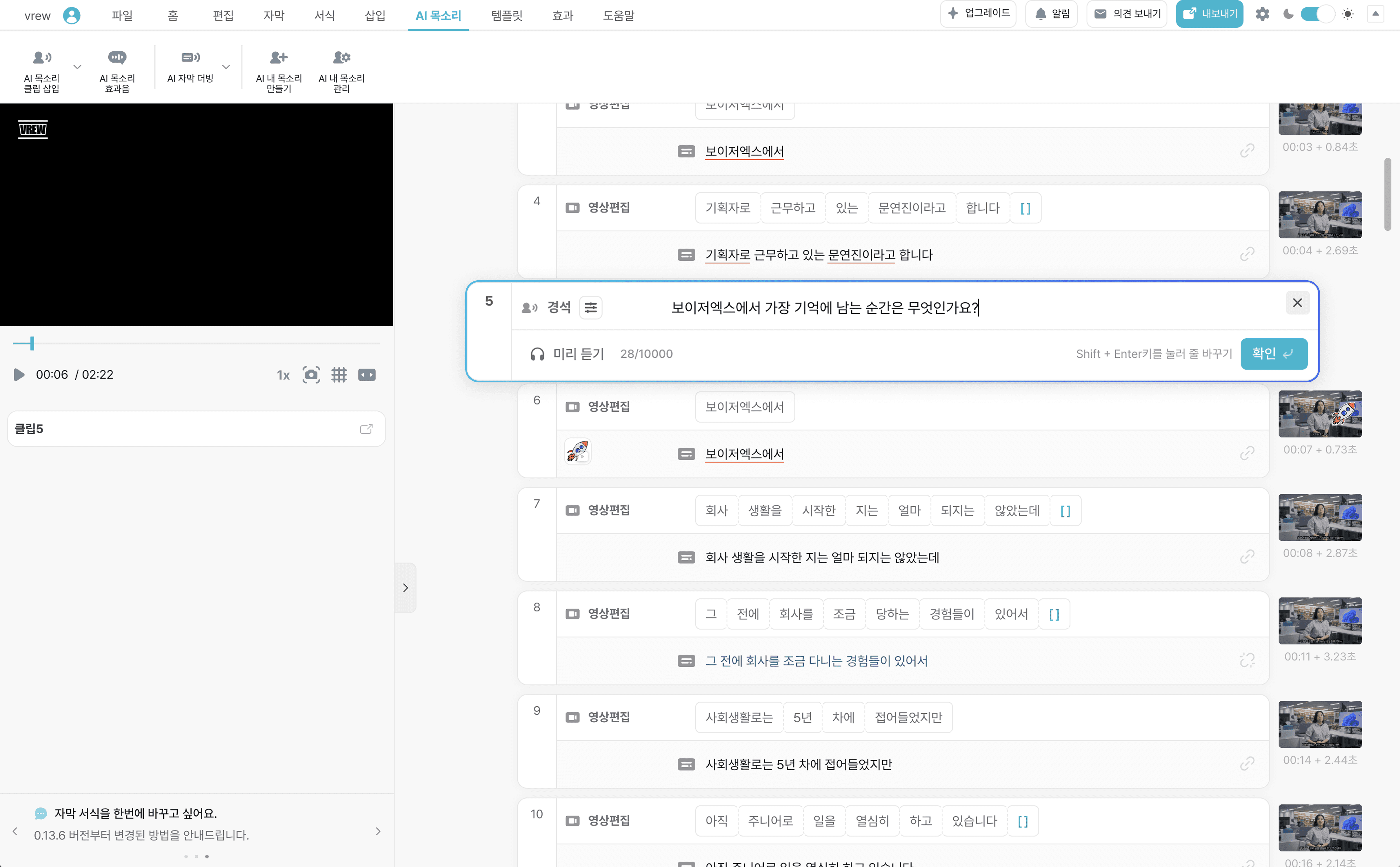 영상 편집 중에도 자유롭게 내용을 다듬어 보세요.