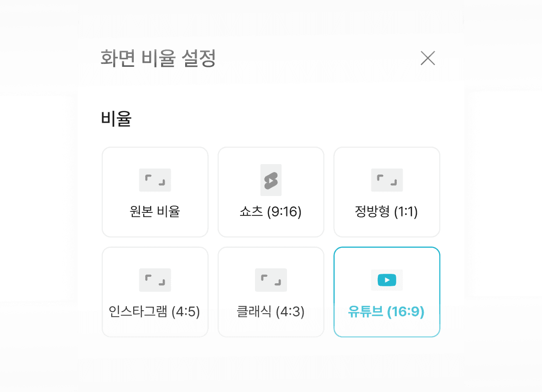 플랫폼에 맞춰 영상 비율을 변경할 수 있어요.