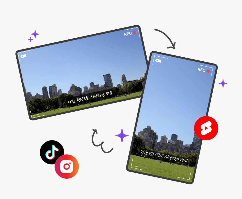 유튜브 쇼츠부터 인스타그램 릴스, 틱톡까지! 다양한 플랫폼의 영상 비율에 맞게 변경할 수 있어요.