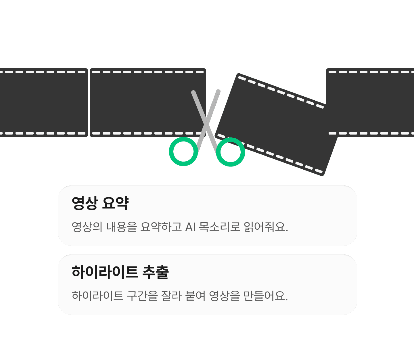 긴 영상 요약이 필요할 때는 AI 요약 영상으로, 핵심 장면만 강조할 때는 AI 하이라이트 영상으로!