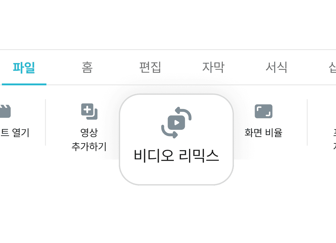 파일 탭에서 '비디오 리믹스' 기능을 클릭하고, 요약 또는 하이라이트 기능을 선택하세요.